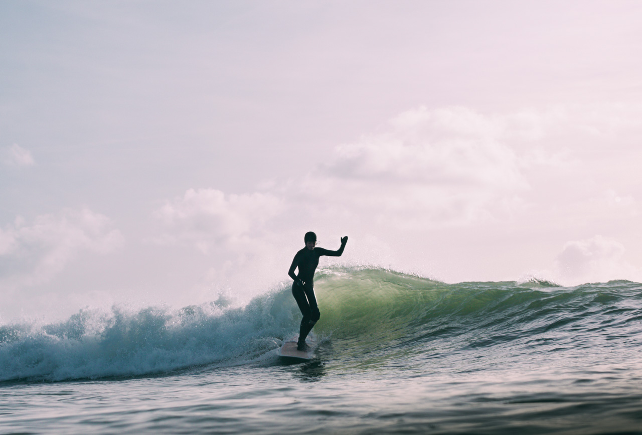 It definitely helps if I’ve arranged to shoot for friends or there will be people I know already in the surf. And I always carry my film camera around with me so I can shoot from the shoreline or perch on the cliff. Film photography is a big love of mine and it’s really helped a lot this winter. From experimenting with different film types to getting impactful drawn back shots and new perspectives, it’s kept the love of surf photography alive and interesting on the days when I don’t feel like getting in the water.