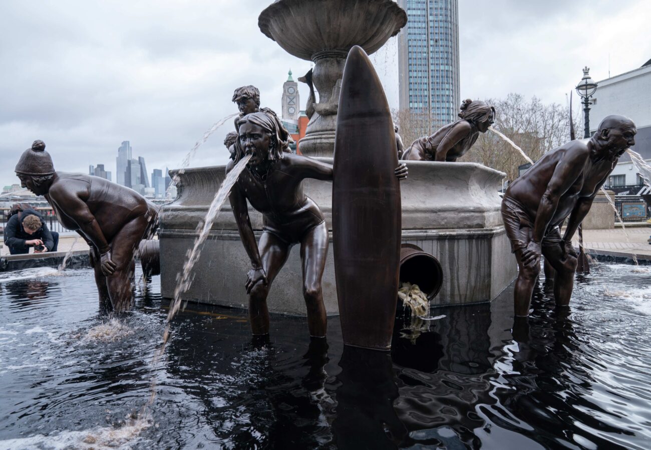 To mark the broadcast, Channel 4 installed “The Fountain of Filth” on London’s South Bank — a provocative public artwork depicting figures vomiting brown water — underscoring the urgency of the crisis explored in the programme.