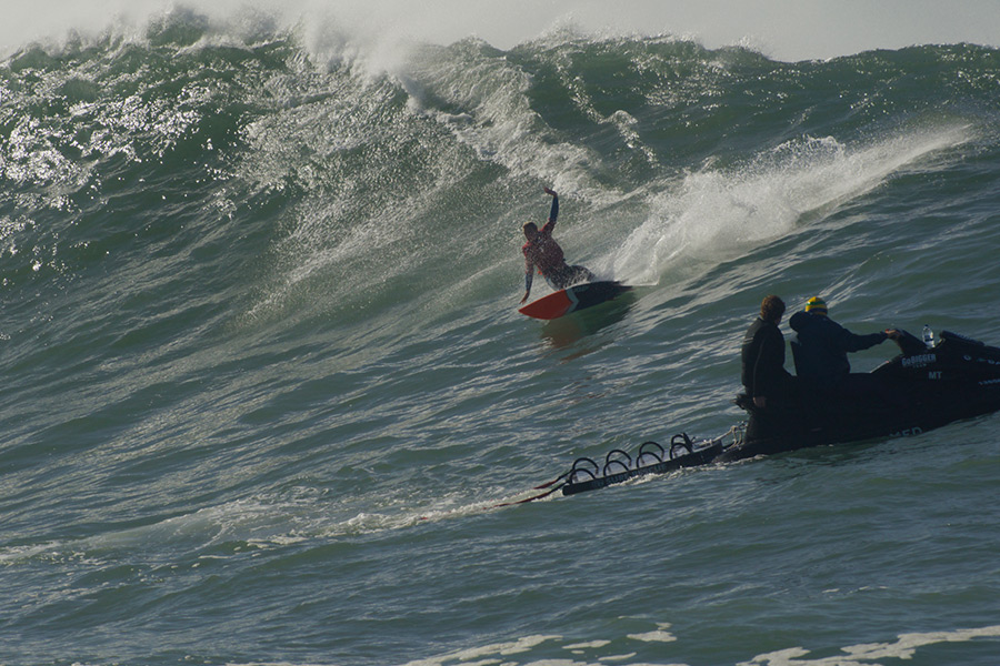 At the same time, it’s a serious sport — people invest a lot of money and risk their lives — so everyone supports each other as much as they can, within those limits. However, in the water and out of the water cheers and celebration are always felt at Nazare for one another.