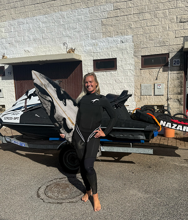 It was the wave itself that inspired me. I didn’t know a single surfer who surfed Nazaré until last year when I decided that I wanted to surf it. Then I looked on Instagram to see who was actually doing it. But truly, it was the wave — it just looked so fun, powerful, and pure, like Mother Nature in her rawest form. If I can be part of that, it’s magical. I also never felt drawn to just go and watch others surf it — I wanted to experience it myself.