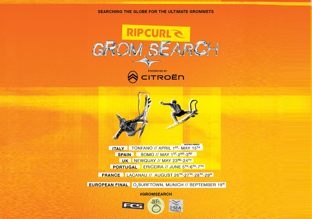Thank you to the European Rip Curl GromSearch sponsors for their support: Citroën, SunBum, I Sea and FCS, as well as all partners, federations and surf schools who help make this circuit possible.
