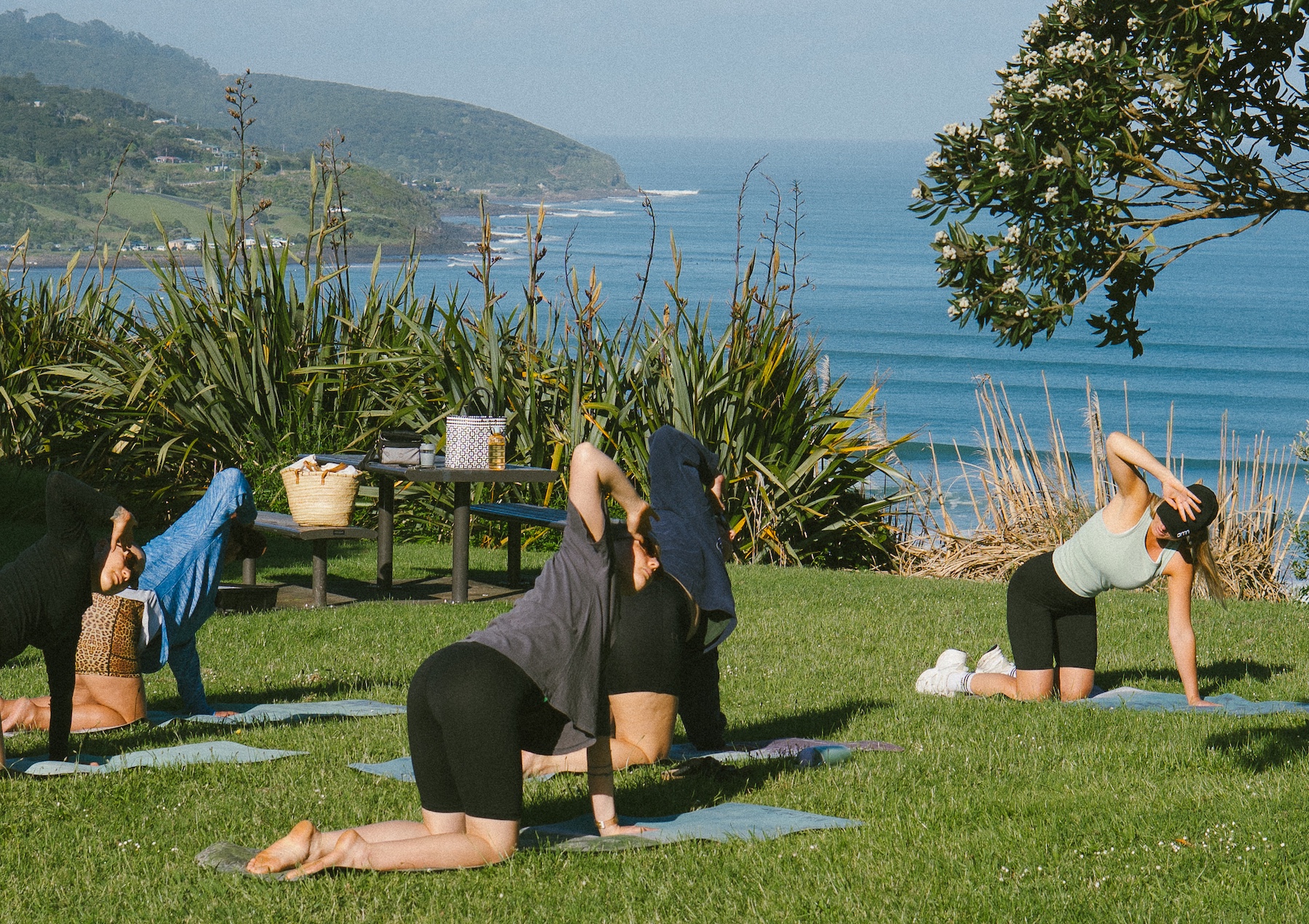 I’ve been teaching outdoor Pilates for surf women here in Raglan alongside The Dames. It feels so aligned to combine my love for surfing and Pilates in nature. The Dames, led by Nina, have created such a supportive and empowering surf club for women in the surf, and I feel really lucky to be part of it.