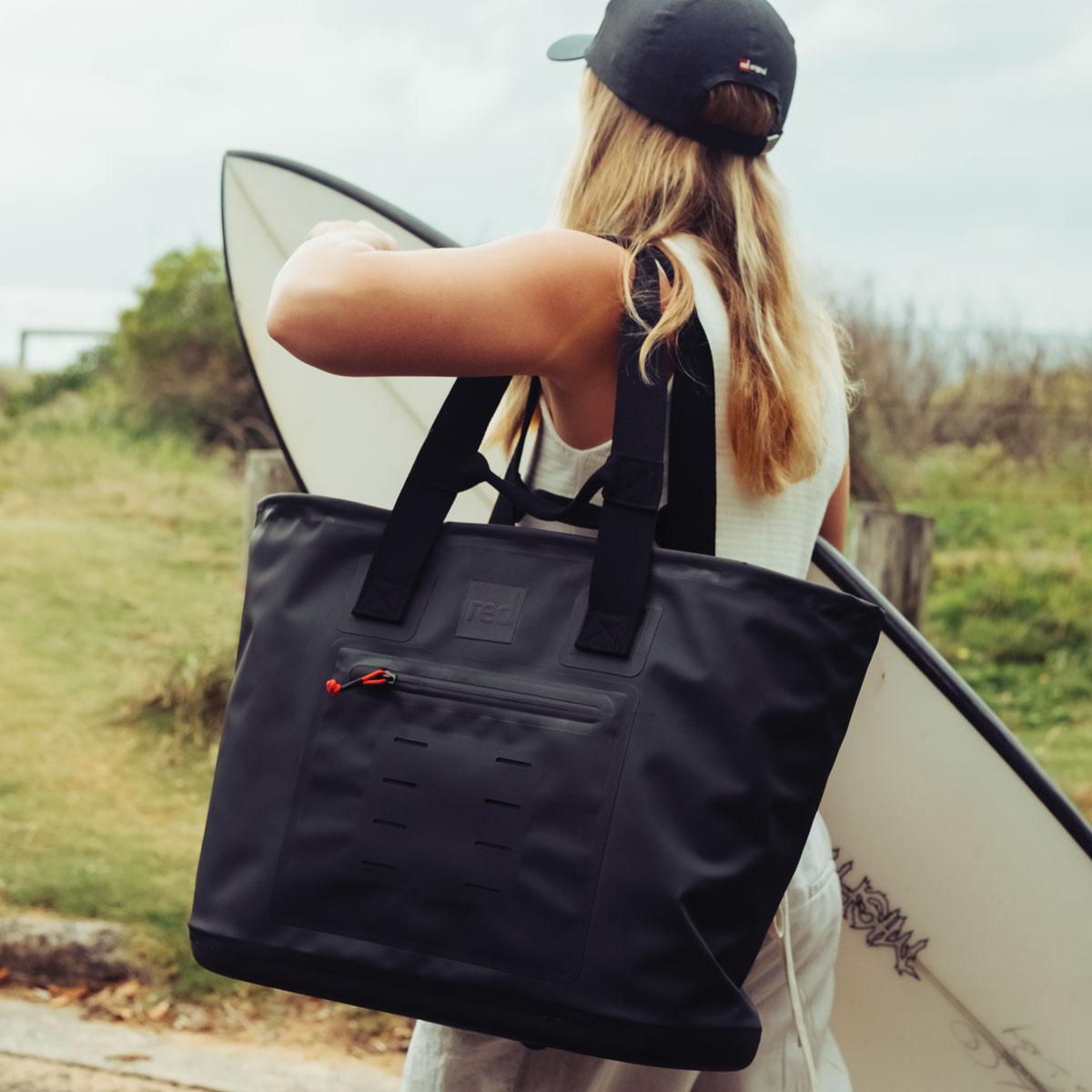 Durable, waterproof and dirt-proof, this 33L tote goes anywhere. Open-topped with magnetic clip, recycled nylon build, and self-supporting structure, a rugged everyday carry-all.